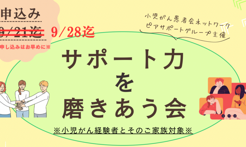 詳細・お申込み:「小児がん患者会ネットワーク・ピアサポートグループ」のホームページをご覧ください。